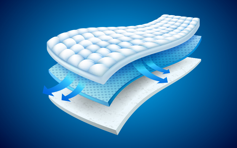표면에는 부드러운 자가드(Jacquard) 원단을 적용하여 촉감과 내구성을 높였고, 내부 코어층은