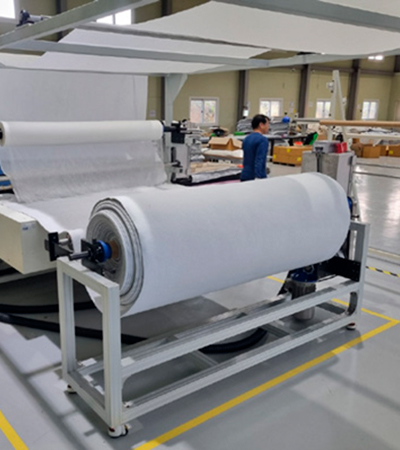 고정밀 자동 재단기를 활용해 원단의 손실을 최소화하고, 설계 도면에 따라 정확하고 일관된 커팅이 가능하도록 시스템화된 생산 공정을 운영합니다.
